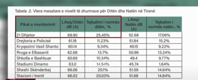 “21 Dhjetori mbetet zona më e zhurmshme gjatë ditës jo vetëm e Tiranës, por e gjithë Shqipërisë. Sipas raportit më të fundit të Agjencisë Kombëtare të Mjedisit për vitin 2022 këtu niveli i zhurmave ditën e tejkaloi me 25% standardin e OBSH dhe ligjit shqiptar”.