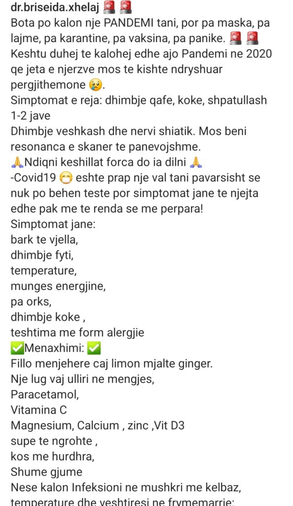 Dr. Briseida Xhelaj përmes një komunikimi ka deklaruar se po kalojmë një Pandemi tjetër Covidi por kësaj here nuk po bëhet bujë dhe panik.