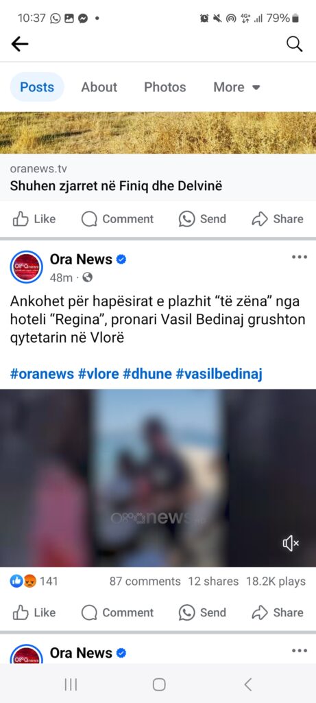 Ankohet për hapësirat e plazhit “të zëna” nga hoteli “Regina”, pronari Vasil Bedinaj grushton qytetarin në Vlorë. Një i afërm i Bedinaj shkruan se zënka ka qenë për hapësirat e Jet Ski që qytetari kishte zënë. Asgjë nuk e justifikon dhunën fizike në plazhe në sytë e njerëzve.