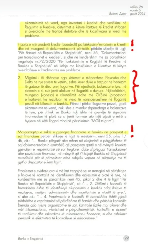 “Mosparaqitja e saktë e gjendjes financiare të bankës në pasqyrat e saj financiare përbën shkelje të ligjit.” zëri.ai