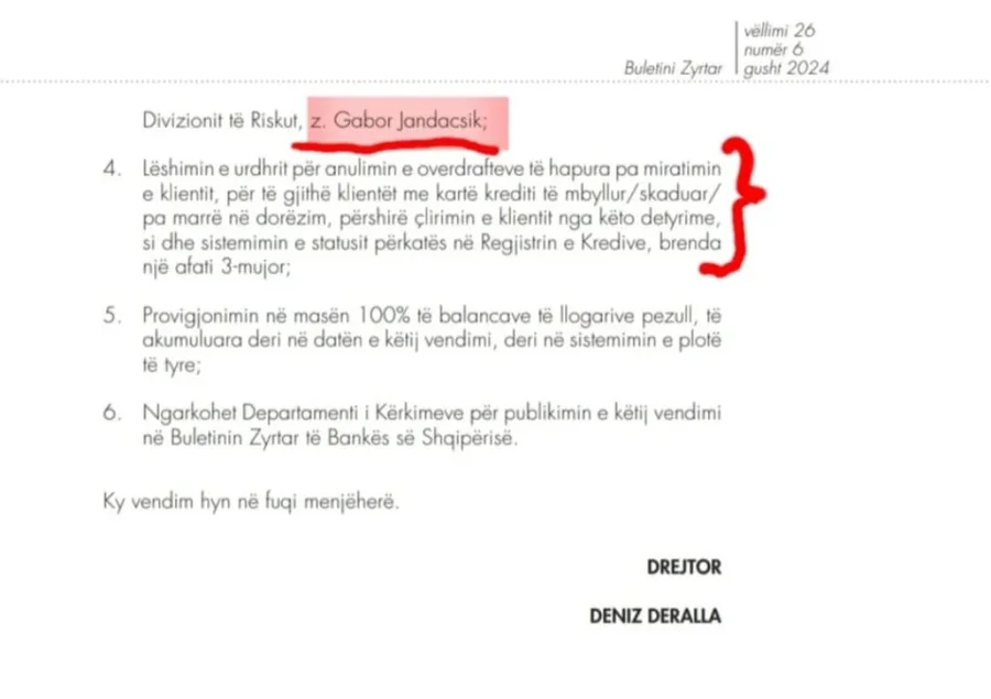 Vendimi hedh dritë mbi skandalin, se si u mashtruan shqiptarët, ku thuhet se kartat e tyre të kreditit pas ndryshimit të procesit, rezultojnë se janë hapur në formën e overdraft-it me balancë debitore që përbëhet nga komisione të disa viteve të shkuara, për të cilat klienti nuk ka qenë në dijeni.