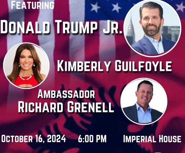 Richard Grenell, Donald J Trump Jr dhe Kimberly Guilfoyle, tre personazhe tepër të njohur mes republikanëve në SHBA, do të zhvillojnë një takim me shqiptarët e Amerikës, në kuadër të fushatës për t’i bindur ata të votojnë Donald Trump.