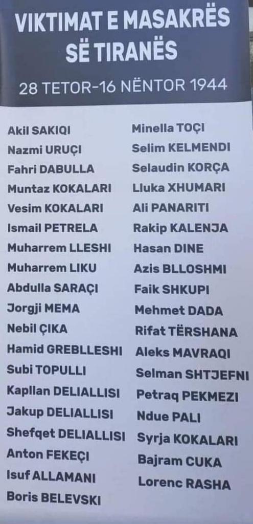 17 nëntori shënon ditën e pushtimit të Tiranës nga pushtuesit komunistë pas largimit të ushtrisë gjermane. Si sot 80 vite më parë, forcat nacional- çlirimtare, shënuan një moment historik për jetën e gjithë vendit në përpjekjet kundër qytetarëve të Tiranë, duke pushkatuar intelektualë dhe qytetarë të pafajshëm.