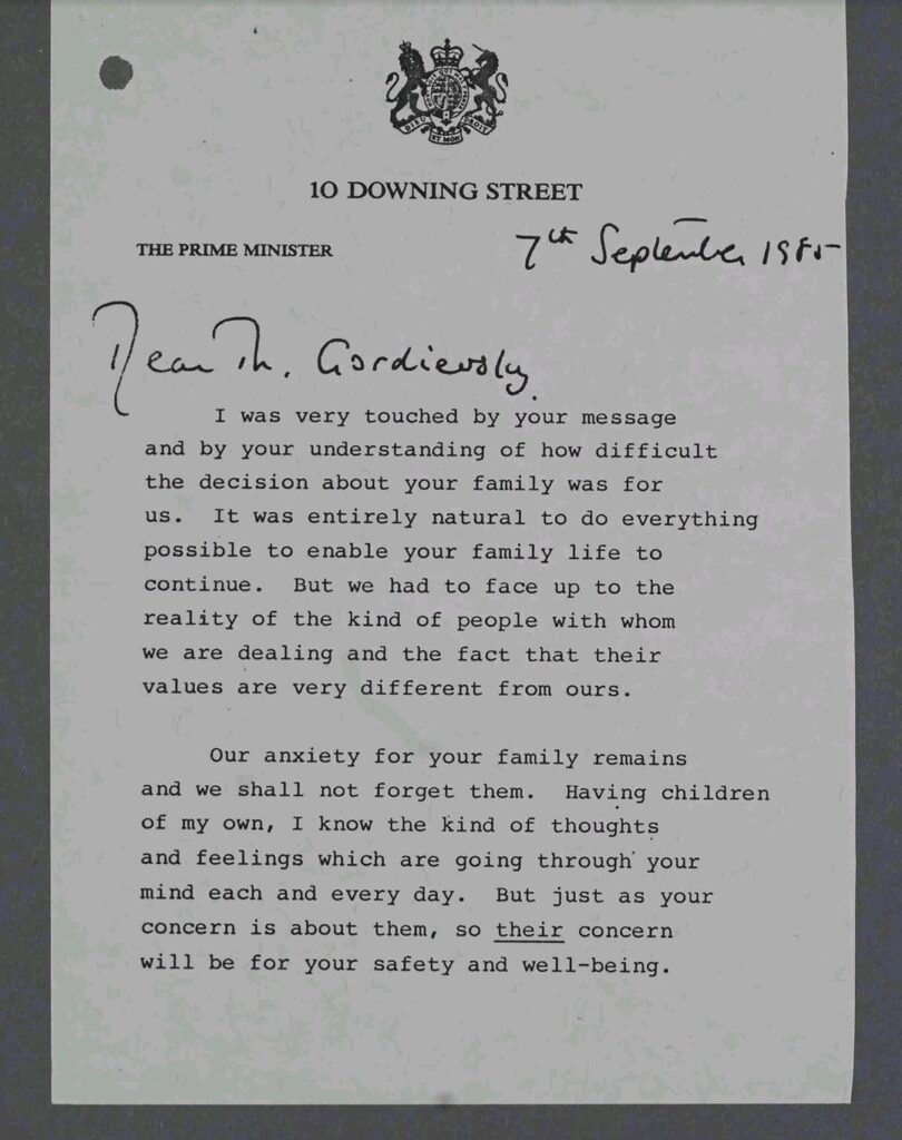 Në mungesë të tij, Gordievsky u dënua me vdekje në Rusi për tradhti.