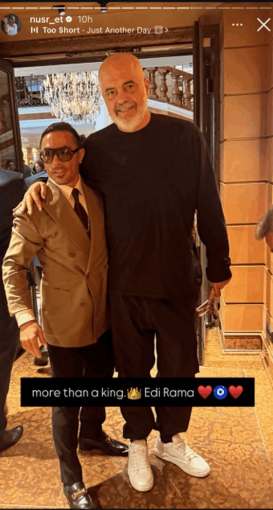 Pas takimit me youtuberin e njohur ISPEED gjatë festivalit të Champions League, Rama gjatë finales së CHL ka takuar kuzhiniero-biznesmenin me origjinë turke, Nusret Gokçe i cili ka publikuar një foto me Rama. Ai e quan km “më shumë sesa një mbret”.