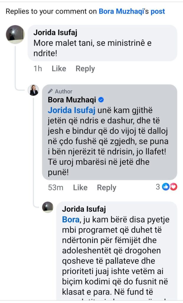 Deputetja më e re e parlamentit Bora Muzhaqi është shumë aktive në rrjetet sociale për të komunikuar me qytetarët për çështje të ndryshme. Por jo të gjithë janë miqësor në komente.