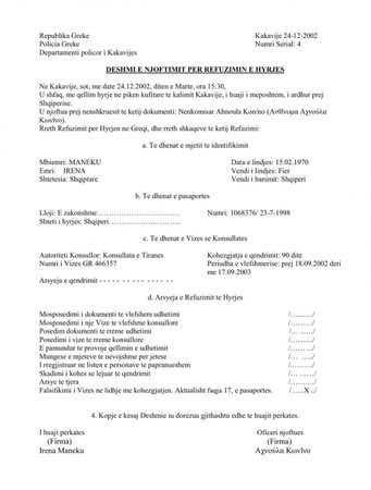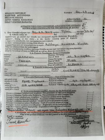 Berisha publikoi edhe një dokument, që sipas tij vërteton se policia greke e ka përzënë Irena Gjokën nga territori i shtetit grek si falsifikatore vizash.