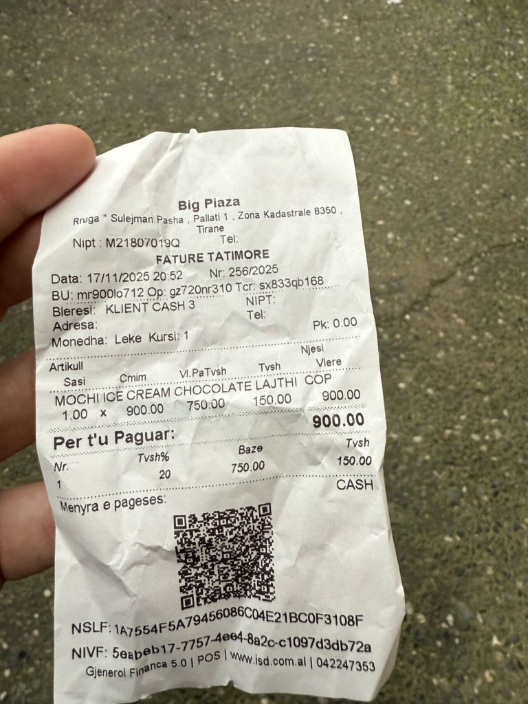 Atëherë, para një jave gati shkoj në një supermarket dhe blej disa embëlsira dhe kur paguaj kuptoj që çmimi në të vërtetë ishte 100 Lekë ose 1 Euro më shumë se sa ai i ekspozuari.