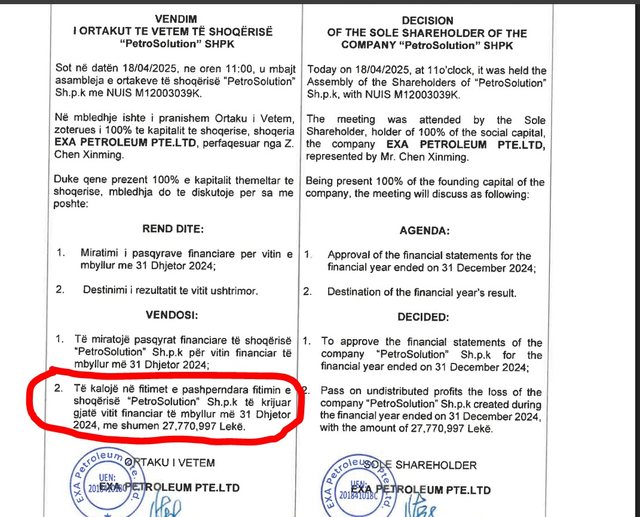 Disa muaj pasi firma ndërroi pronar, paratë kanë vërshuar lumë te firma “Petro Solution”. Kompania në vitin 2023 dhe 2024 ka xhiruar dhjetëra miliona euro, duke bërë blerje në Kinë apo duke marrë makineri me qira. Ajo rriti në mënyrë të menjëhershme kapitalin, teksa ka dyshime se u rritën edhe shpërblimet e pronarëve dhe drejtuesve.