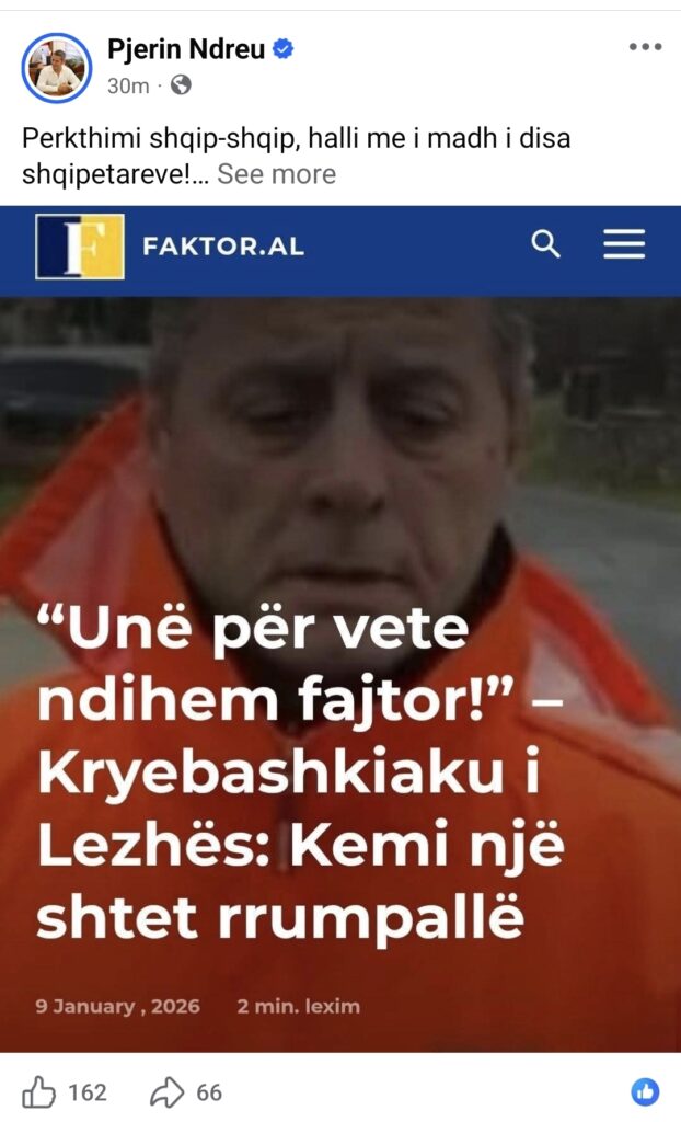 Sa për “shtetin rrumpallë” që ju e thoni vetë në tekstin Tuaj, e kemi peshqesh nga ju politikanët (PS, PD, LSI, etj) që keni pasur detyra të larta shtetërore 35 vitet e fundit: shefa, drejtora, deputetë, kryebashkiakë, etj.