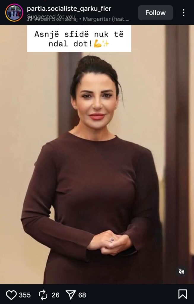 Pas vendimit të Gjykatës Kushtetuese që rrëzon kërkesën e qeverisë për të hequr pezullimin nga detyra të zv.kryeministres Balluku, ka ardhur reagimi i parë politik. PS dega e qarkut Fier, ku drejtuese është vetë znj. Balluku, ka bërë një postim mbështetës: