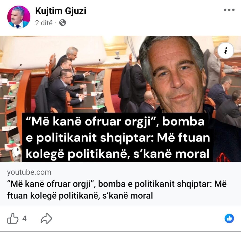 Kujtim Gjuzi thumbon Jenisherin: Më kanë ofruar orgji, më ftuan kolegë politikanë 15 February , 2026 Më pak se 1 min. lexim Advertisements Latest articles Kush e bleu kokën e Ali Pashë Tepelenës: Fundi i luanit të Janinës Apertura 2 15 February , 2026 Bretkosa ekuadoriane me shigjetë, toksina e zbuluar në trupin e Navalnyt, lider i opozitës Apertura 15 February , 2026 A i dëgjoi ndokush sinjalet e Merz për rajonin ? Apertura 2 14 February , 2026 Inter mban vendin e parë, bie Juventus Apertura 3 14 February , 2026 Related articles Kush e bleu kokën e Ali Pashë Tepelenës: Fundi i luanit të Janinës Apertura 2 15 February , 2026 Bretkosa ekuadoriane me shigjetë, toksina e zbuluar në trupin e Navalnyt, lider i opozitës Apertura 15 February , 2026 A i dëgjoi ndokush sinjalet e Merz për rajonin ? Apertura 2 14 February , 2026