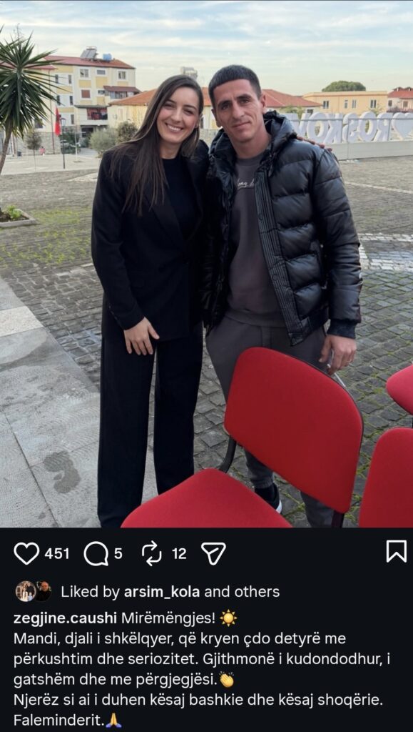 Deputetja e qarkut Fier Zegjine Caushi përmes një komunikimi publik ka njoftuar takimin me një punonjës bashkie të Roskovecit, Mandin, për të cilin ka respekt e vlerësimit të veçantë.