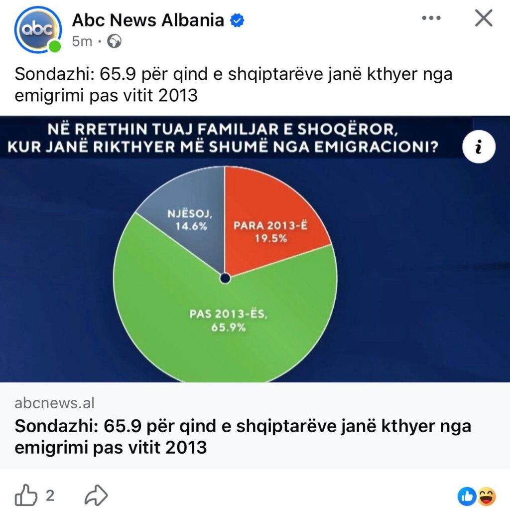 Sokol Balla sfidon Eurostatin: 65.9% e shqiptarëve u kthyen nga emigrimi pasi erdhi Rama në pushtet 3 March , 2026 Më pak se 1 min. lexim Advertisements Latest articles 17 apartamente i kam në Fier, 15 në Durrës dhe 7 në Tiranë! Dy biznesmenët trafikantë kapen në përgjime Apertura 16 March , 2026 Arrestohet maniaku amerikan në Tiranë, punonjësja e tij 20-vjeçare e denoncon për ngacmim seksual Apertura 2 16 March , 2026 I vunë tritolin një makine, kapen 7 persona. Porosia nga burgu Apertura 2 16 March , 2026 SPAK zbulon 2 apartamente të trafikantit të fshehura përmes Pajtoni shpk, GJKKO njofton kompaninë e ndërtuesit Apertura 16 March , 2026 Related articles 17 apartamente i kam në Fier, 15 në Durrës dhe 7 në Tiranë! Dy biznesmenët trafikantë kapen në përgjime Apertura 16 March , 2026 Arrestohet maniaku amerikan në Tiranë, punonjësja e tij 20-vjeçare e denoncon për ngacmim seksual Apertura 2 16 March , 2026 I vunë tritolin një makine, kapen 7 persona. Porosia nga burgu Apertura 2 16 March , 2026