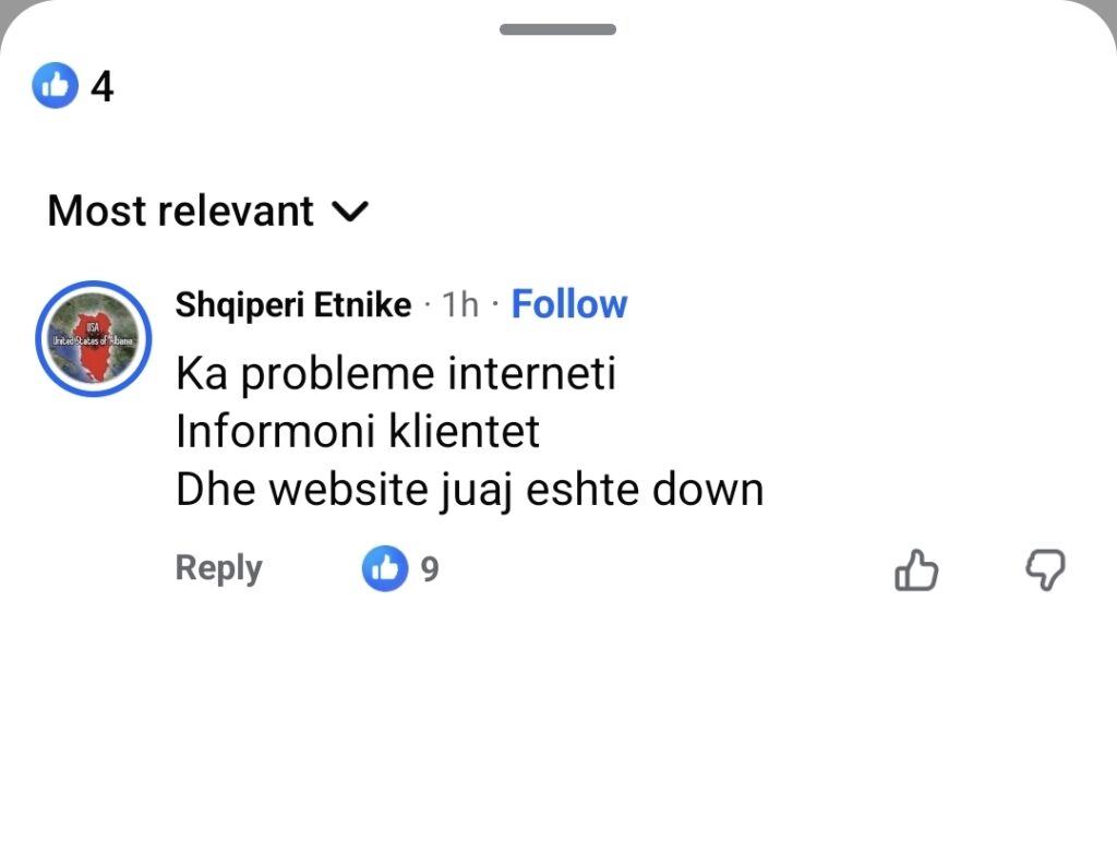 Abonentët fatkeqë të kompanisë celulare One Albania nuk po gjenë dot ‘derman’. Prej orësh sistemi i lidhjes telefonike e interneti është ndërprerë. Websitw është jo online.
