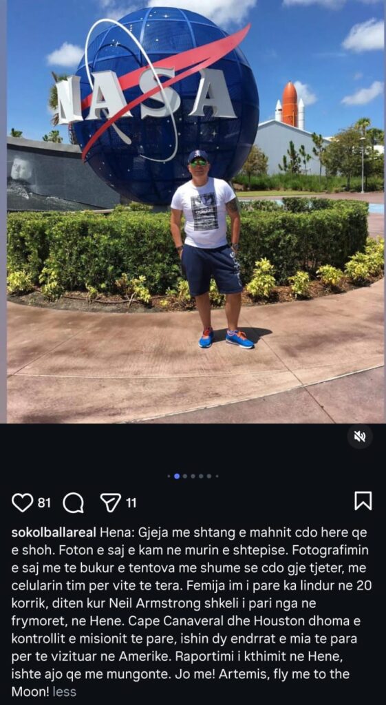 Sokol Balla ëndërron të shkojë në Hënë 3 April , 2026 Më pak se 1 min. lexim Advertisements Latest articles Skandali me fondet e BE-së në Greqi, tre ministra japin dorëheqjen Apertura 2 3 April , 2026 Rama mbledh kryebashkiakët, dy demokratët i lë përjashta: Garda nuk na lejoi! Apertura 3 April , 2026 E pandehur në dosjen “Veliaj”, ish-deputetja socialiste kërkon gjykim të shkurtuar! Apertura 2 3 April , 2026 Pas naftës, kriza e domates 4 mijë lekë kg! Apertura 3 April , 2026 Related articles Skandali me fondet e BE-së në Greqi, tre ministra japin dorëheqjen Apertura 2 3 April , 2026 Rama mbledh kryebashkiakët, dy demokratët i lë përjashta: Garda nuk na lejoi! Apertura 3 April , 2026 E pandehur në dosjen “Veliaj”, ish-deputetja socialiste kërkon gjykim të shkurtuar! Apertura 2 3 April , 2026