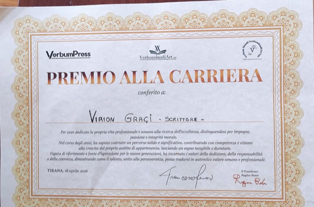 Për përkushtimin e jetës së tij profesionale dhe personale ndaj ndjekjes së përsosmërisë, duke u dalluar përmes përkushtimit, pasionit dhe integritetit moral. Gjatë viteve, ai ka ndërtuar një karrierë të fortë dhe kuptimplote, duke kontribuar me ekspertizë dhe vizion në rritjen e fushës së tij të ekspertizës, duke lënë një gjurmë të prekshme dhe të qëndrueshme. Një model dhe burim frymëzimi për brezat e rinj, ai ka mishëruar vlerat e përkushtimit, përgjegjësisë dhe punës së palodhur, duke demonstruar se si talenti, i kombinuar me këmbënguljen, mund të përkthehet në vlerë autentike njerëzore dhe profesionale.