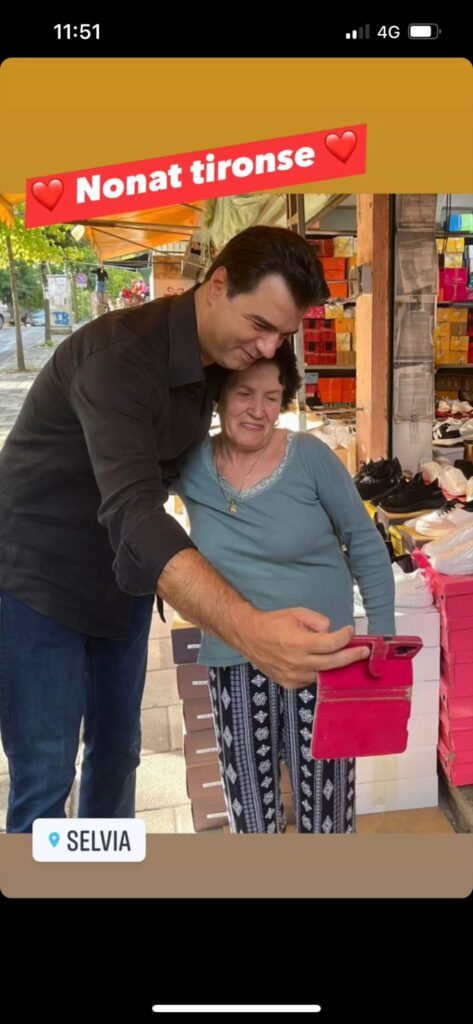 Basha gjithashtu ka ndarë një foto të veçantë nga dita e tij me një zonjë Tiranase, duke shkruar “Nonat Tironse”.